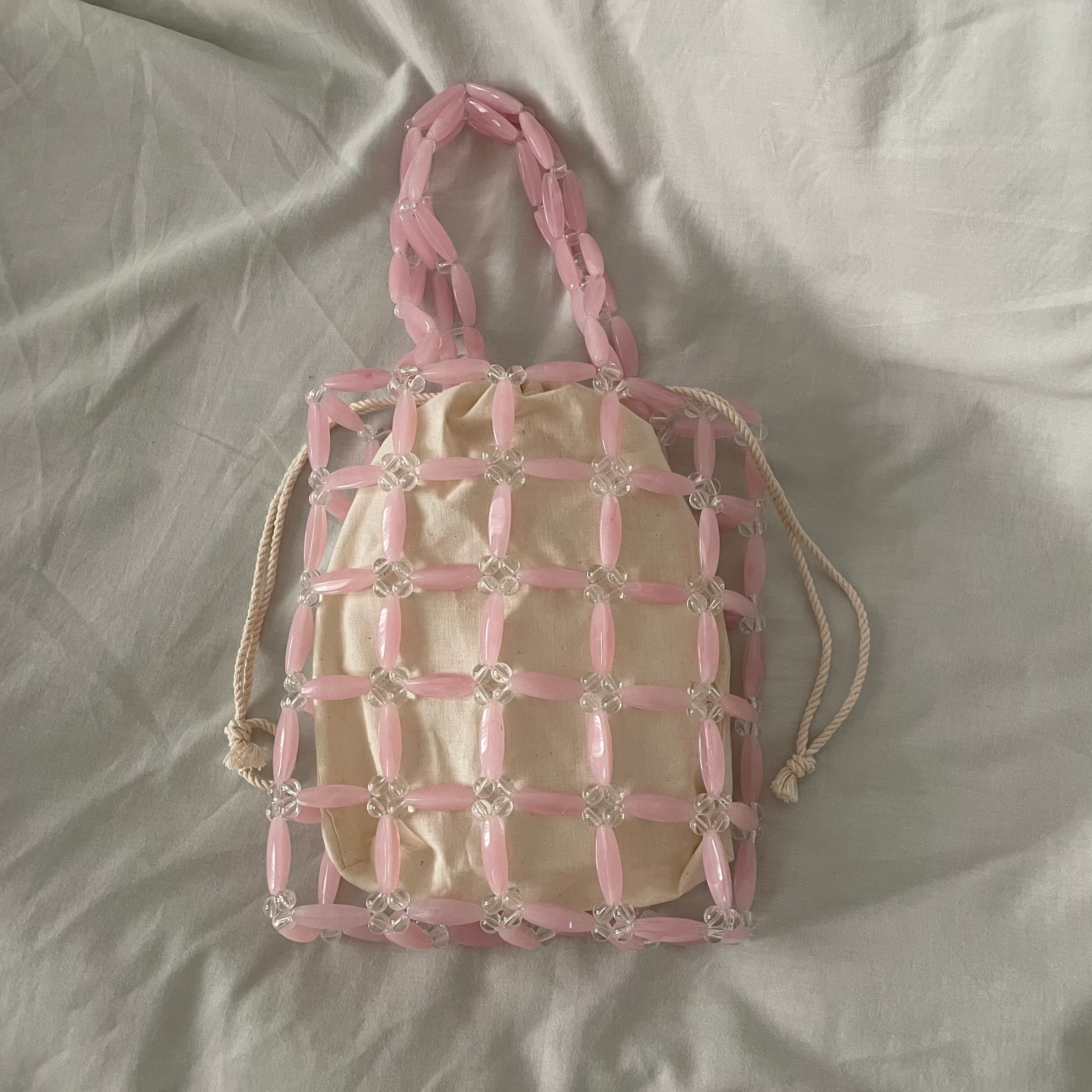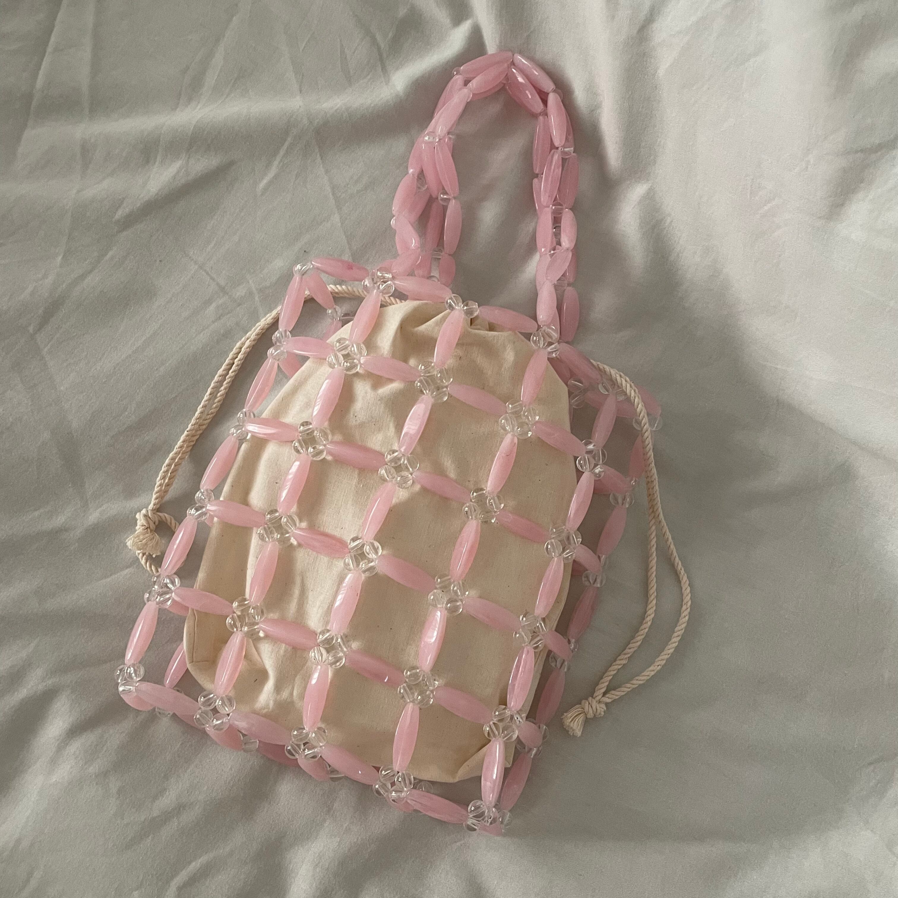 ⌇ビーズトートバッグ【pink×clear】⌇