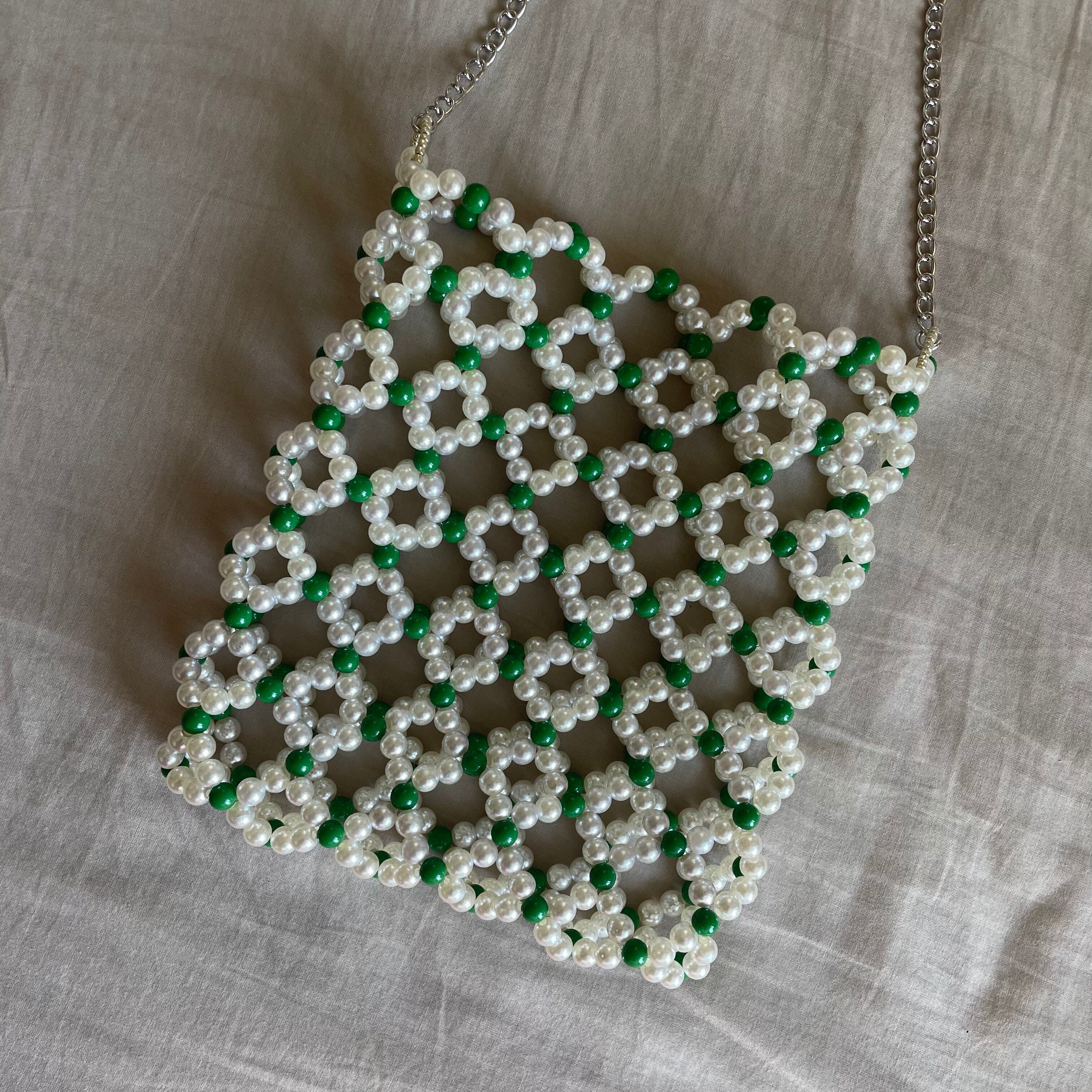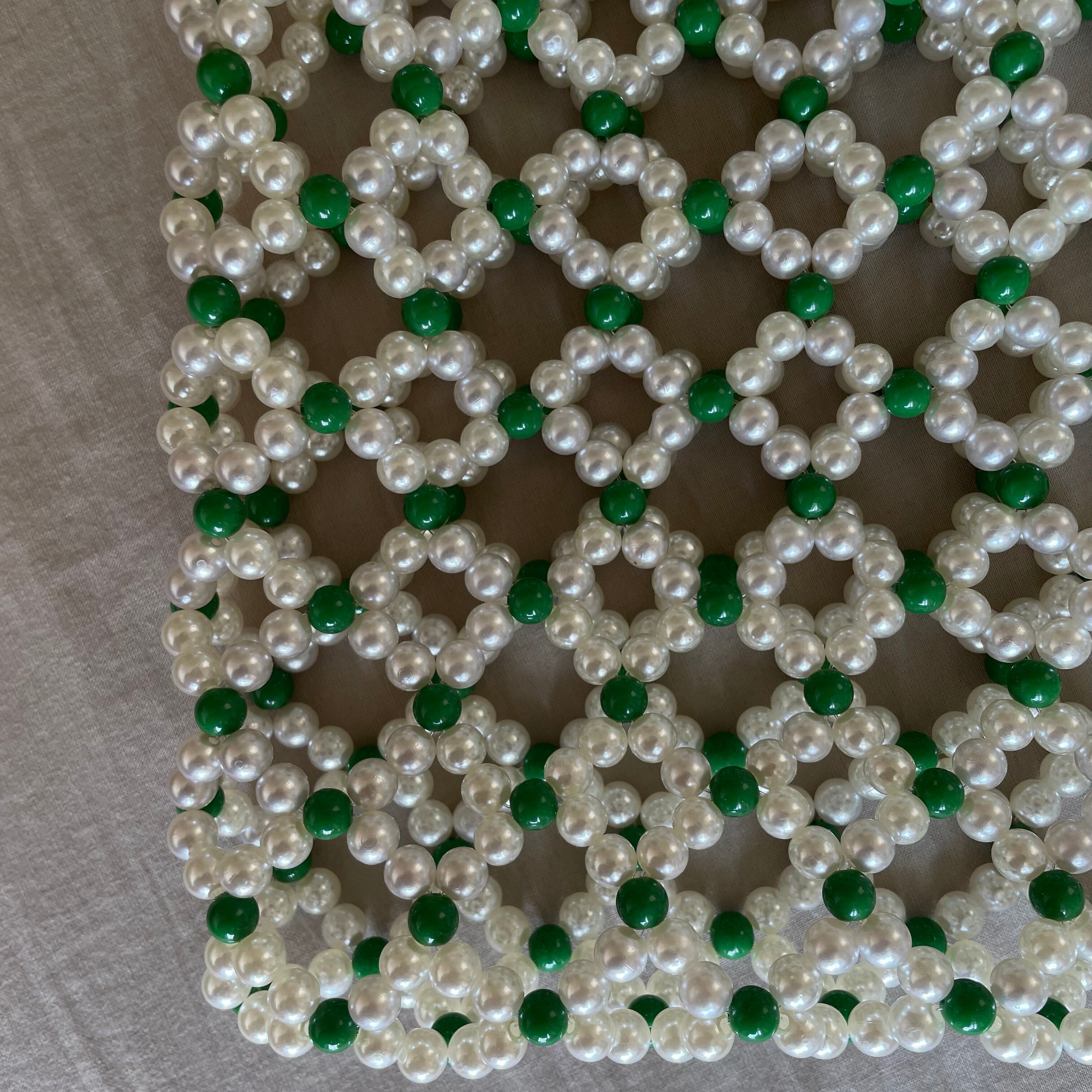 フェイクパールとグリーンで、甘くなりすぎずポップな色合いに。